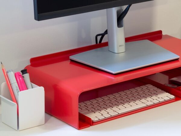 اگر به دنبال راهکاری شیک و کاربردی برای بهبود ارگونومی میز کار خود هستید، استند مانیتور و لپتاپ فلزی فرومینیمال انتخابی ایدهآل است. این استند با طراحی مینیمال و مهندسیشده، ارتفاع نمایشگر یا لپتاپ را به سطح استاندارد دید میرساند تا از خستگی گردن و شانهها جلوگیری کرده و تمرکز و بهرهوری شما را افزایش دهد. بدنهی فلزی مستحکم با پوشش رنگ پودری الکترواستاتیک پلیاستر گرید ثابت، مقاومت بالایی در برابر خطوخش، سایش و تغییر رنگ ایجاد میکند. طراحی هوشمندانه آن فضای زیر استند را برای قرار دادن کیبورد، موس، هارد اکسترنال یا لوازم جانبی آزاد میگذارد و میز کار شما را منظمتر میکند. همچنین سطح پایدار و ضدلغزش، ایمنی کامل دستگاههای شما را تضمین میکند.